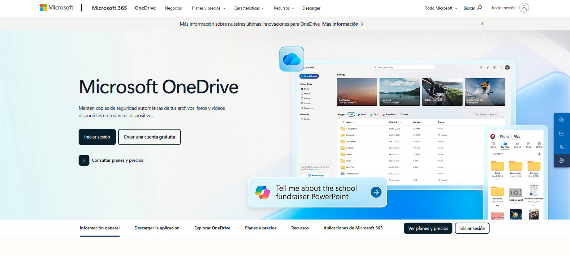 Gracias a su integración nativa en Windows 10 y Windows 11, así como su disponibilidad para otros sistemas operativos y dispositivos, OneDrive facilita la organización, copia de seguridad y acceso universal a los archivos. Además, la plataforma ofrece diferentes planes de almacenamiento que se adaptan tanto a usuarios particulares como a empresas pequeñas, medianas o grandes.